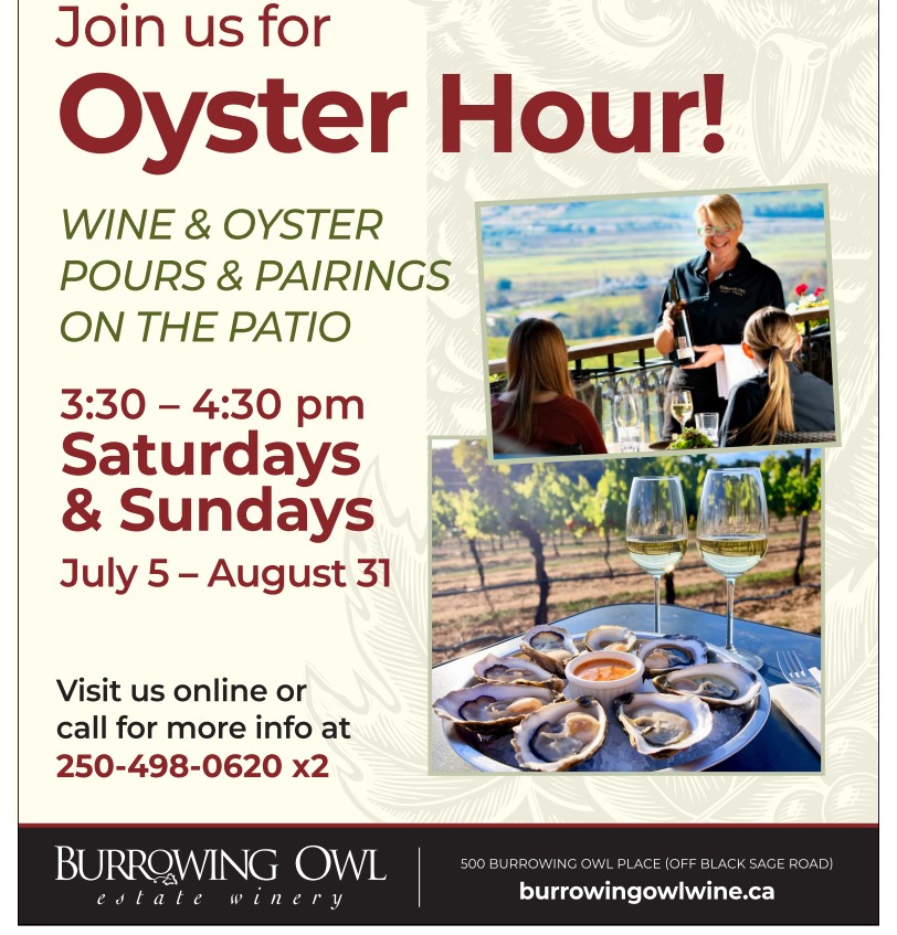Wine & Oyster pours & pairings on the patio every Saturday & Sunday from July 5- August 31 2025