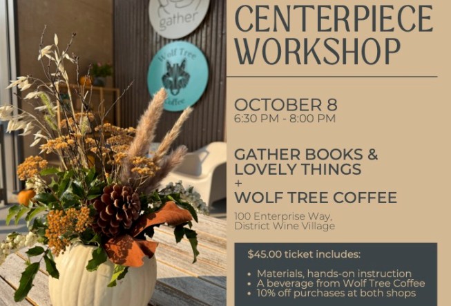 Join Gather Books & Wolftree Coffee for an evening of creativity and community at the District Wine Village.