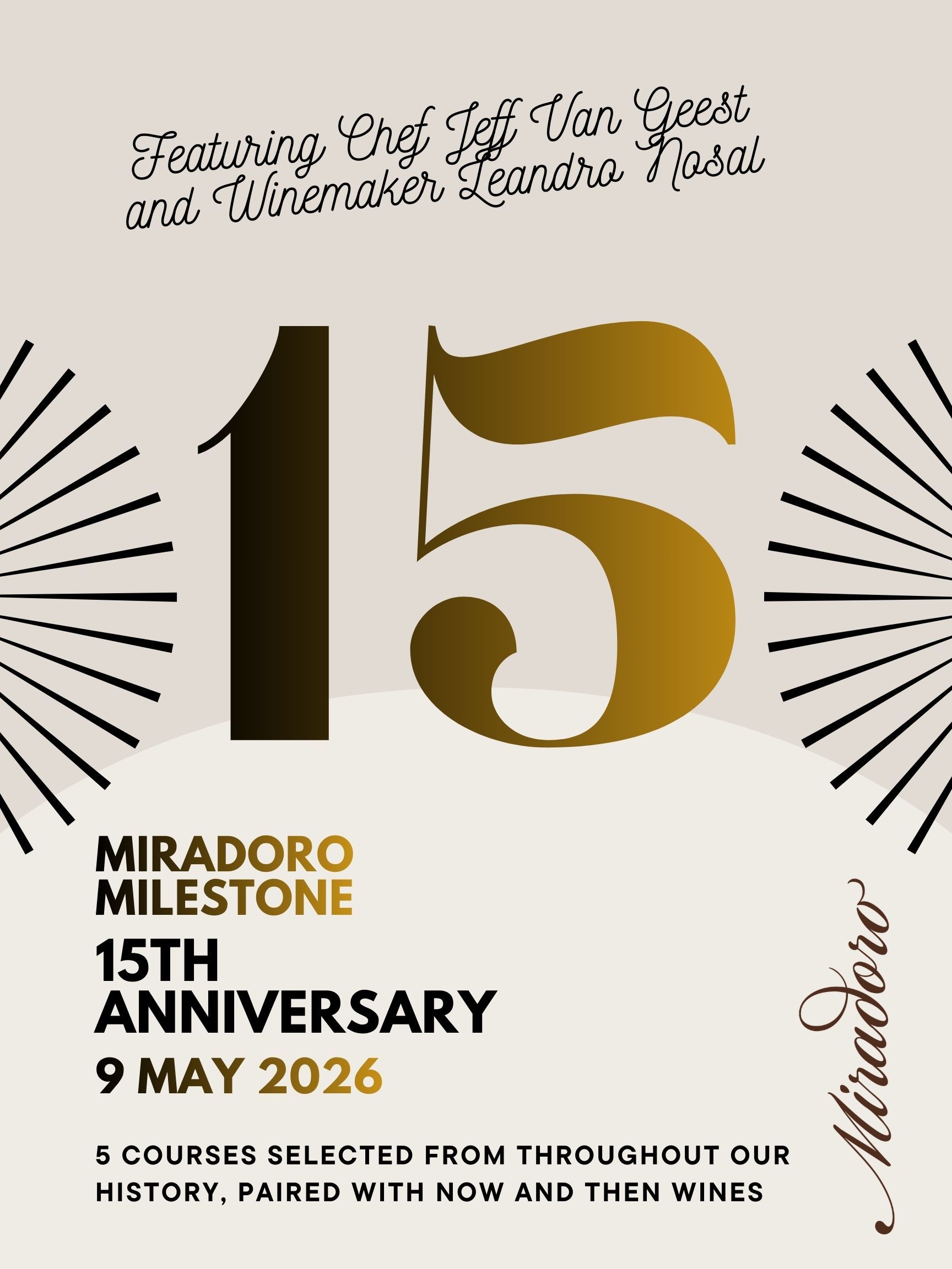 5 courses selected from throughout our History, paired with Now and Then wines.