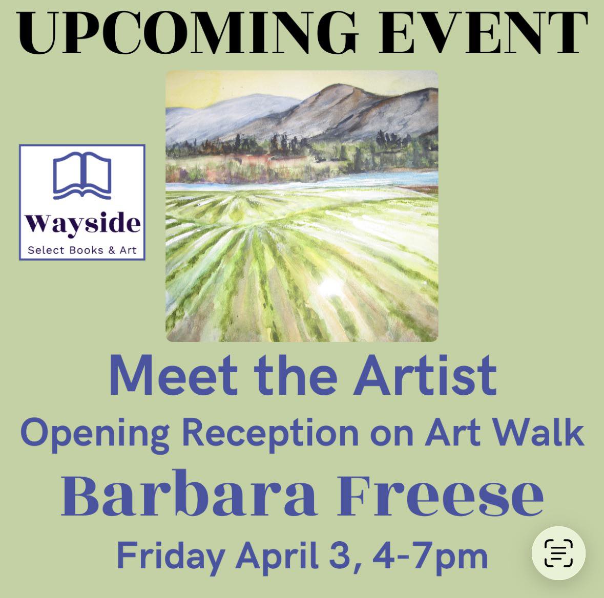 Wayside Select Books & Art is pleased to welcome back one of our faves, local painter Barbara Freese.